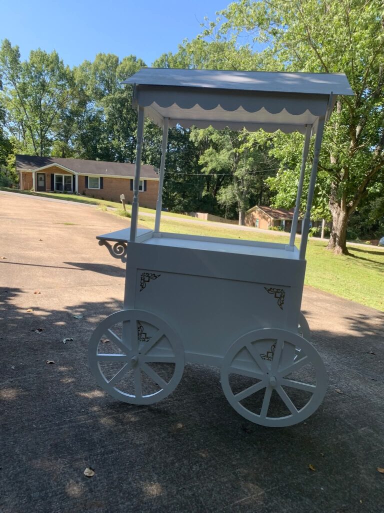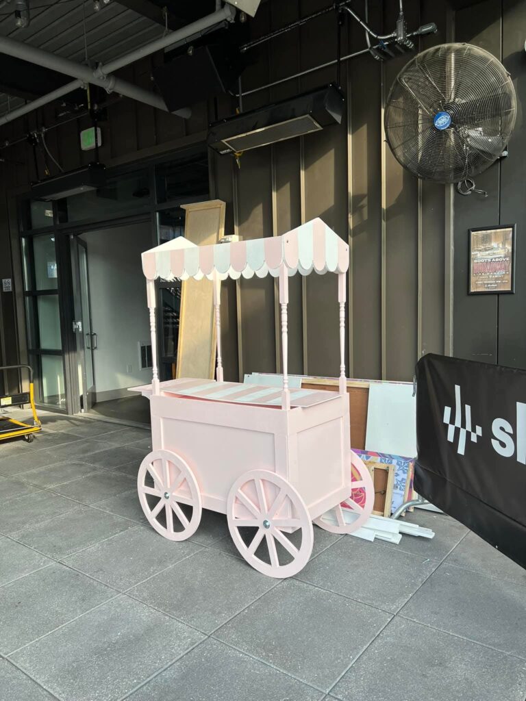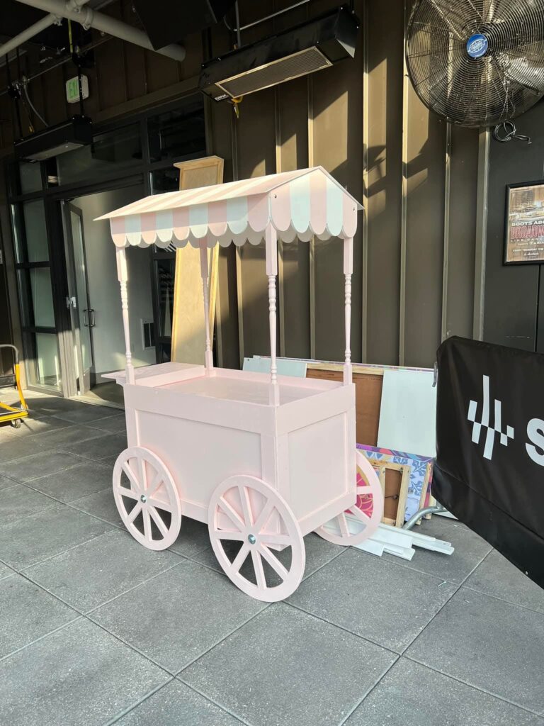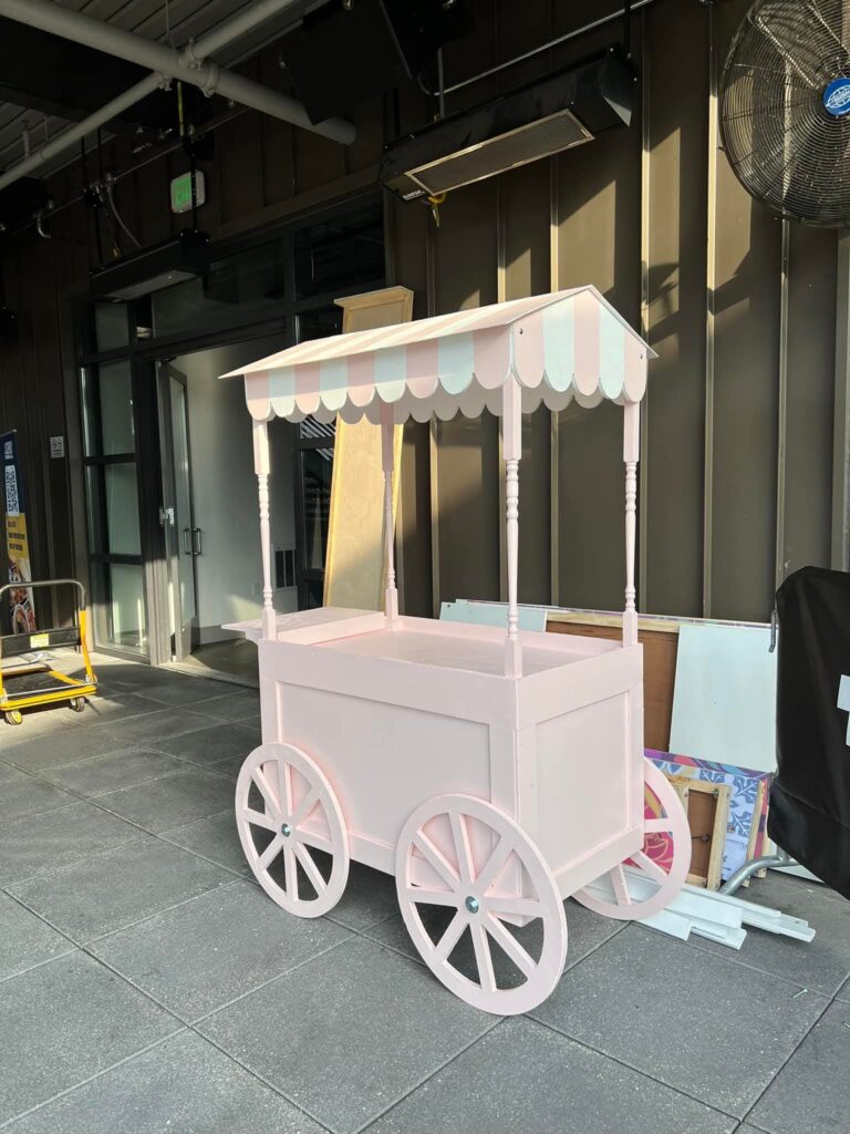 Our candy carts are versatile and come in parts that break down easily, making transport and setup a breeze. We create custom carts tailored to your needs — whether you need a space to hold treats, set up catering, display presents, cupcakes, or anything else.We’re here to help bring your ideas to life and make your party setup as fun and beautiful as possible!