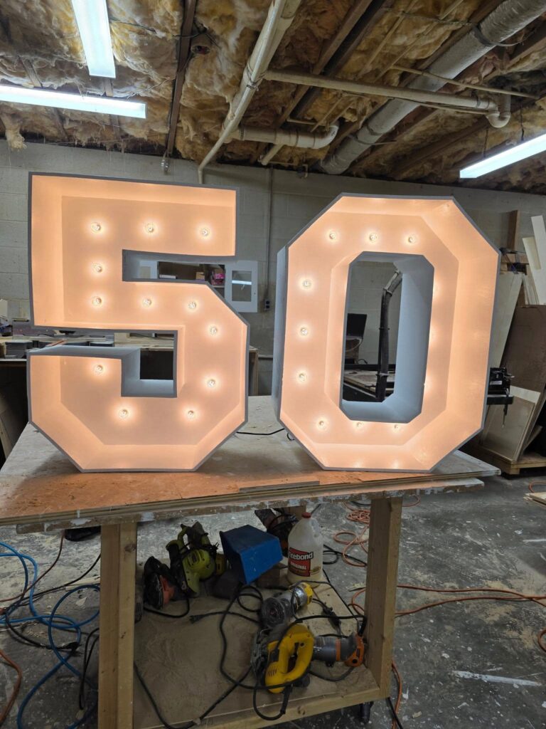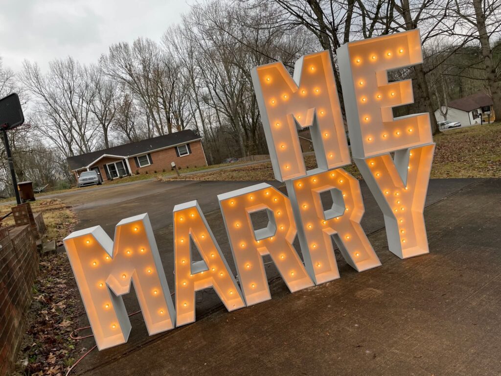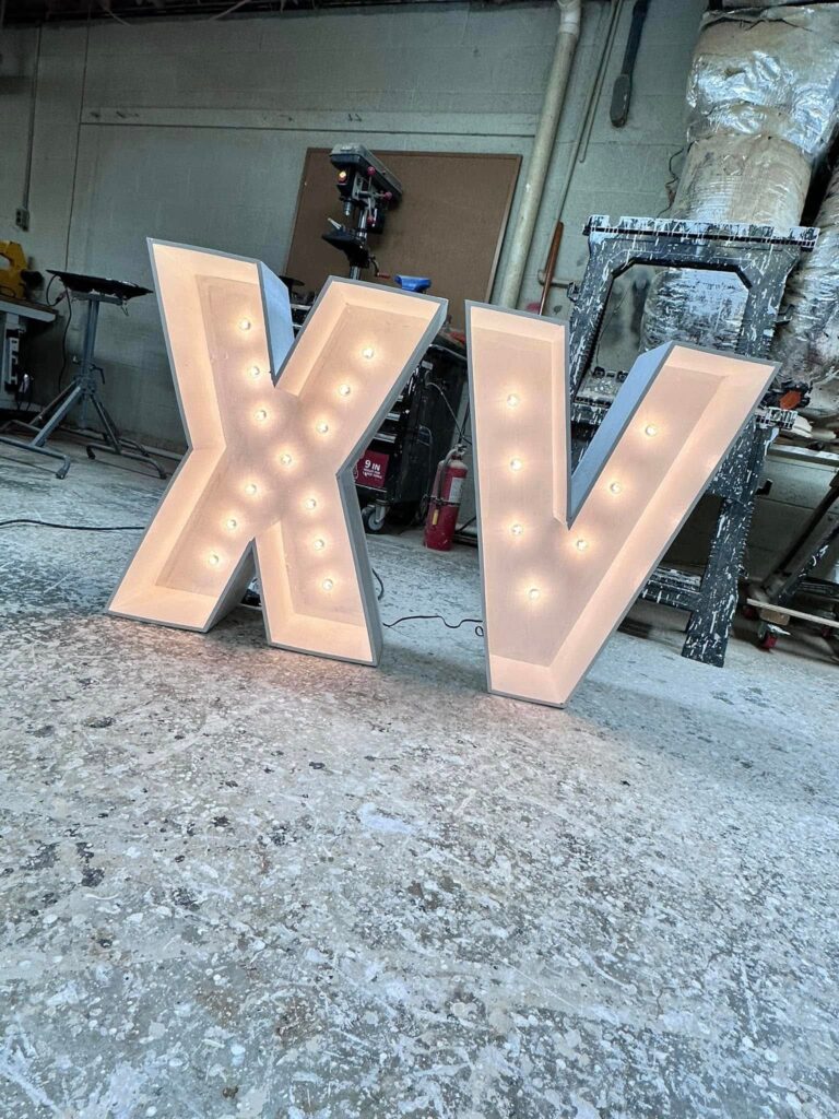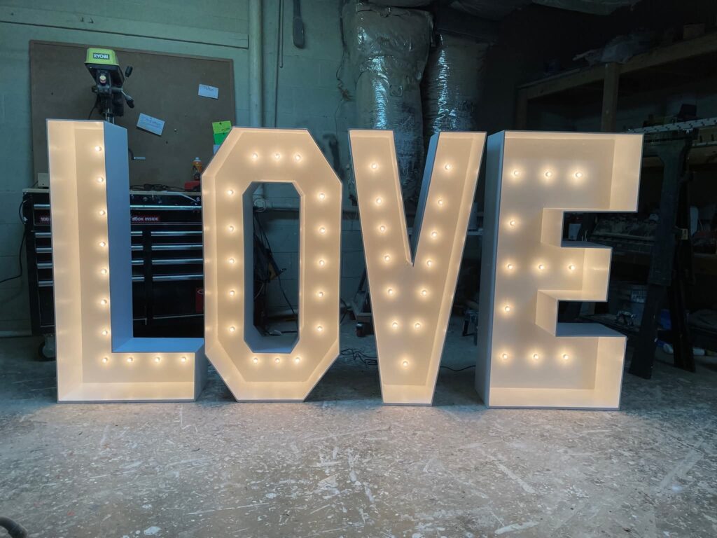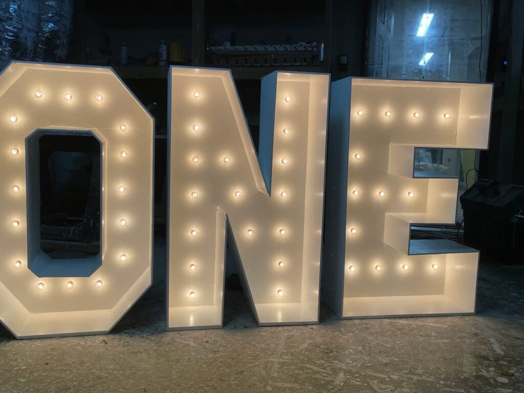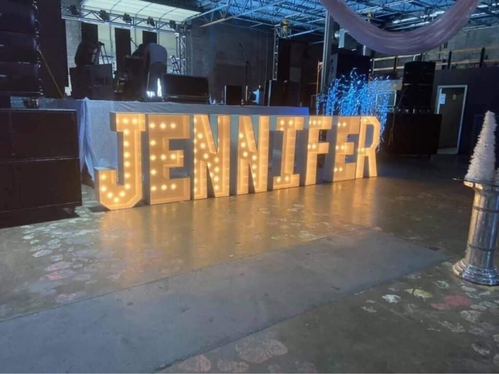 Light up your celebration! Our LED marquee letters and numbers — table-top 30″ or stunning 4-foot tall — add the perfect glow and a magical touch to any event.