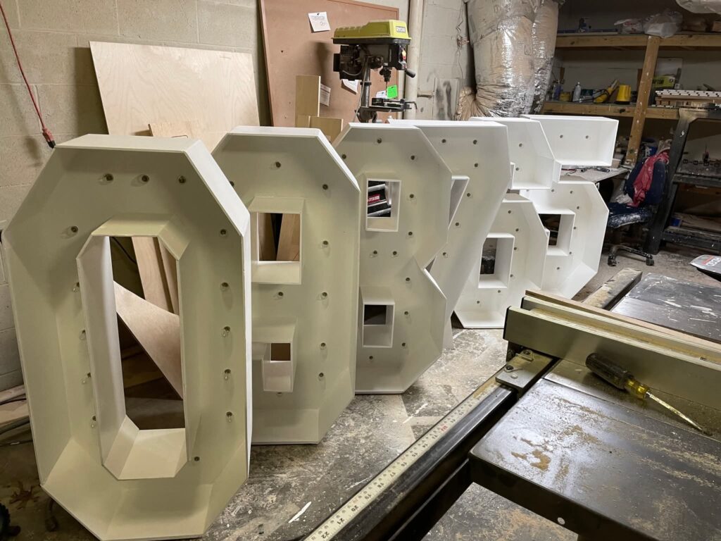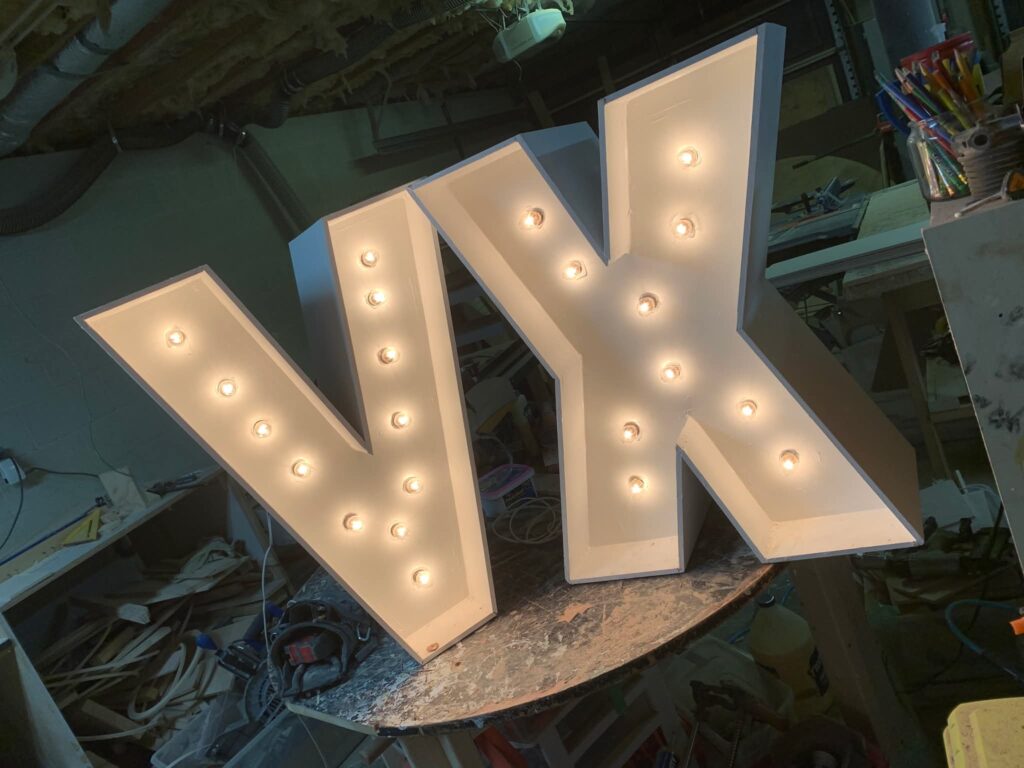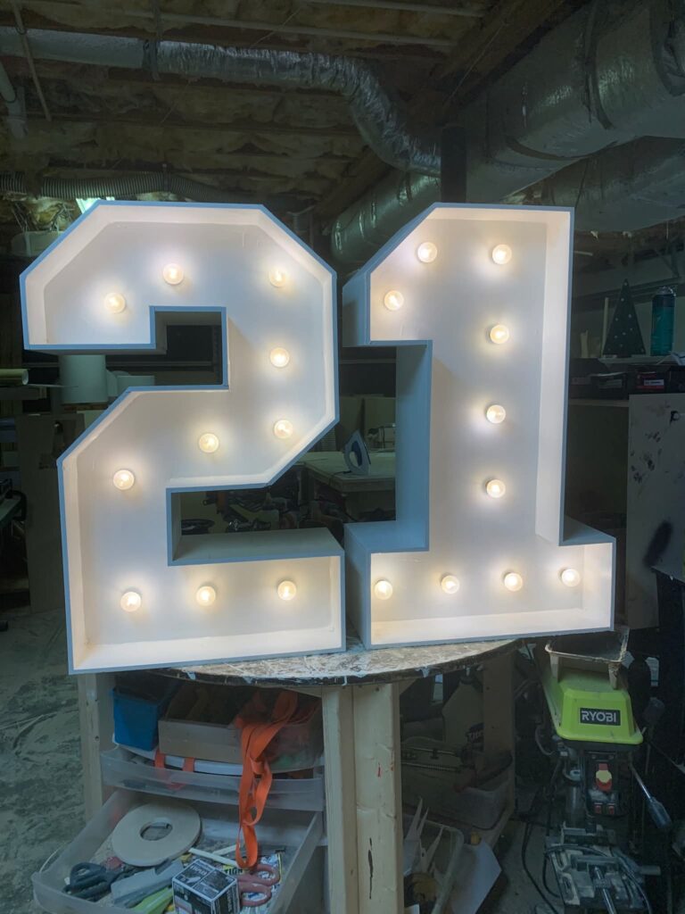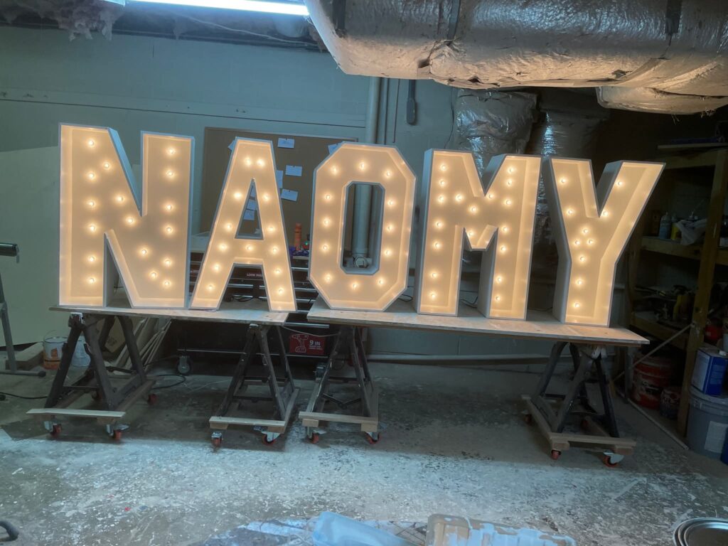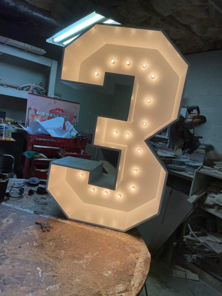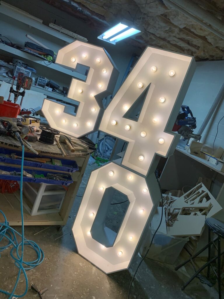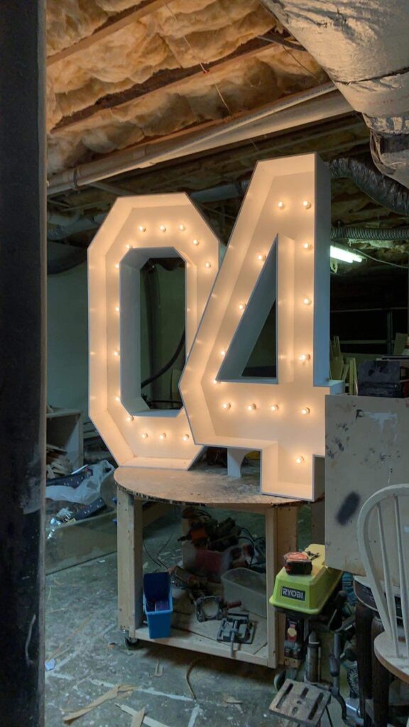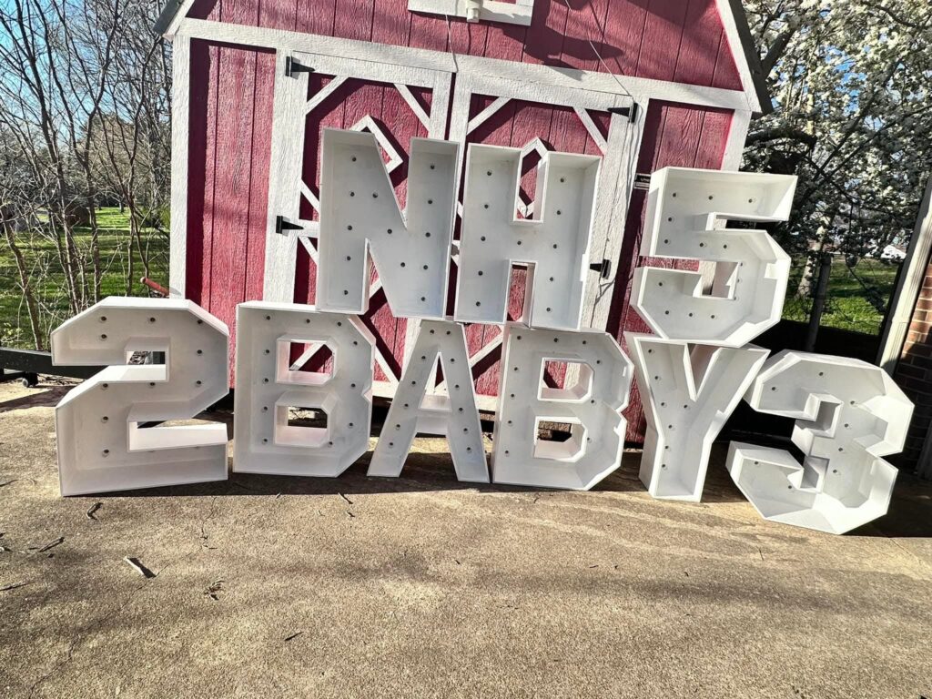 You’ll need to place your order about 3 weeks before your event — timing depends on how many letters or numbers you need. Prices may vary based on wood costs.